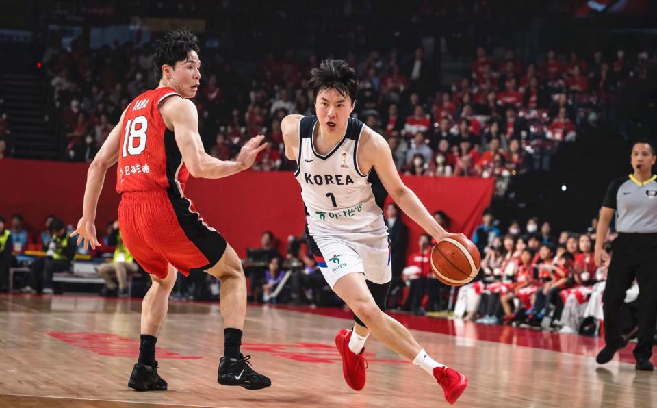 比赛一开始,双方就展现出了激烈的对抗态势,攻防两端你来我往,场面十分胶着。首节比赛,韩国男篮凭借核心球员李贤重的率先发力,勉强掌握场上主动,虽然进攻效率不算突出,但凭借严密的防守限制了日本队的得分,最终以16-15的微弱优势结束首节,仅领先1分。进入次节,日本男篮的阵容调整开始发挥奇效,霍金森在内线展现出了强大的统治力,凭借身高和力量优势持续向韩国男篮的禁区发起冲击,不断造杀伤、拿分,同时在篮板球的争夺上也占据明显优势。反观韩国男篮,面对霍金森的内线压制毫无办法,进攻端节奏混乱,外线投篮频频打铁,防守端也无法及时补位,半场结束时,日本男篮成功反超比分,以42-38领先韩国男篮4分。