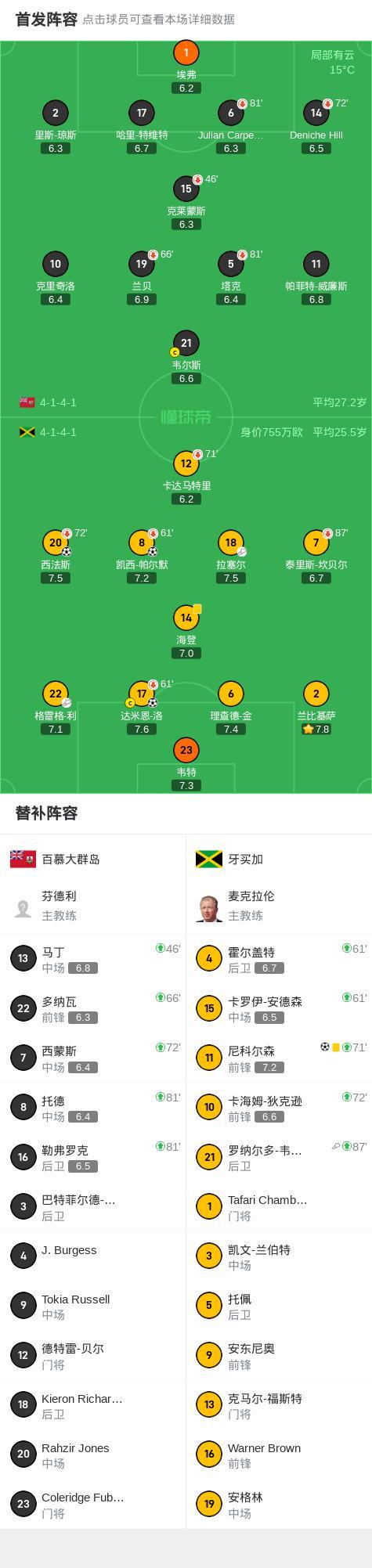 第90分钟,牙买加球员罗纳尔多-韦伯斯特助攻尼科尔森打入一球。